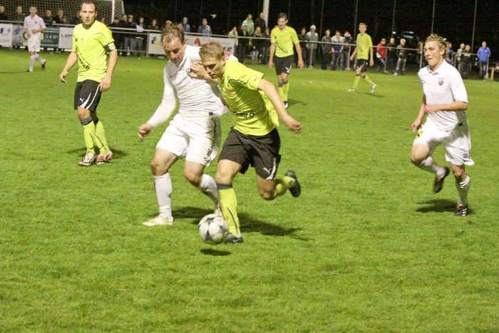 Florian Thomann, der Torschütze für die Mettersdorfer, im Duell gegen Alfred Geigl, rechts Markus Rauch.