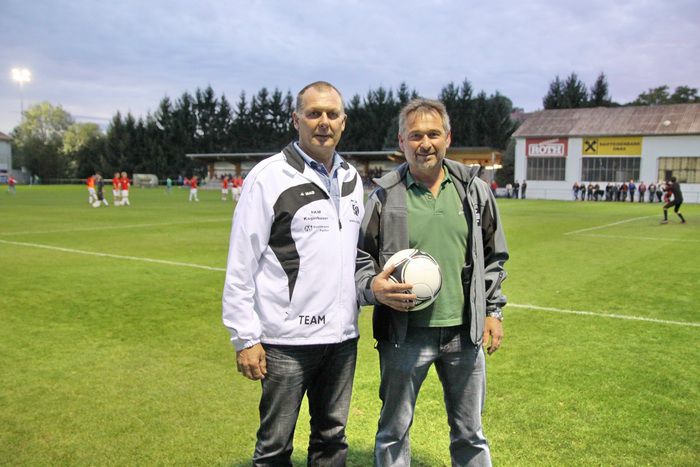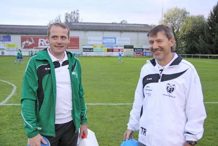 Gut gelaunte Trainer vor dem Match: Manfred Fuchs (links) und Johann Bez.