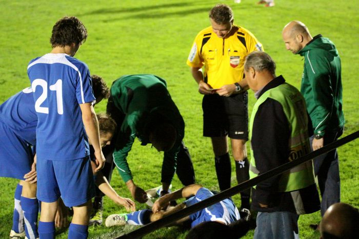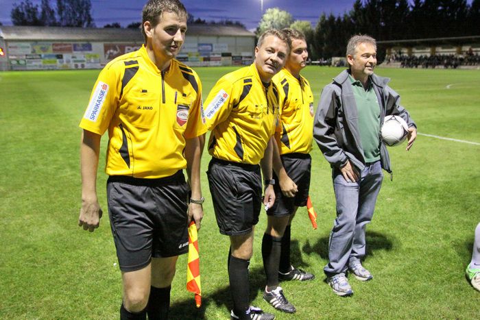 Nach einem Foul an der Outlinie von Zimmermann an Mag. Pichlbauer sieht Zimmermann zuerst die gelbe Karte, dann die rote Karte...irrtümlich ! Der Fehler war aber rasch aufgeklärt...