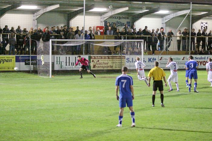 Torhüter Zeller wehrt einen Kölldorfer(ganz links)-Volleyschuss ab (23.).