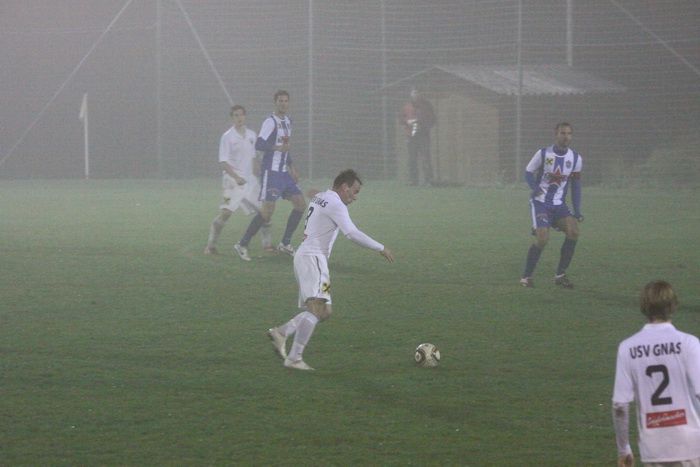 Die Heimelf setzte nun alles auf eine Karte und versuchte zum Ausgleich zu kommen. Das Tor machten jedoch nicht die Heimischen, sondern die Gnaser aus einem Konter über die linke Seite. Matthias Schadler bediente den wieselflinken Raphael Kniewallner und der junge Gnaser bedankte sich dafür im dichten Nebel mit dem Tor zum 3:1 (79.).