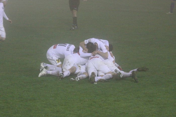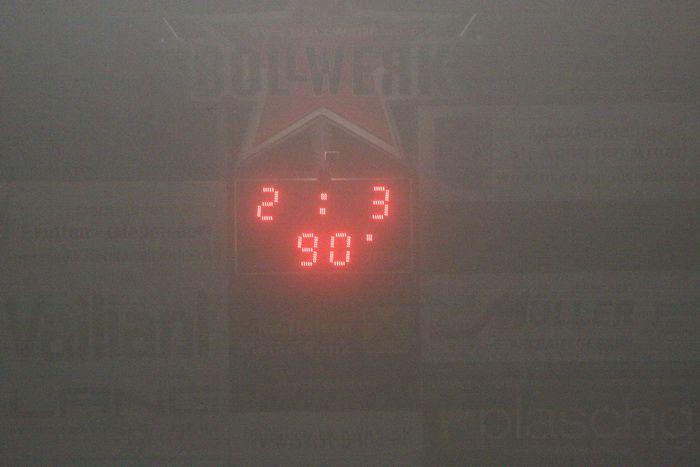 Rund 950 Zuseher erlebten ein rassiges Derby, zwischendurch bei starkem Nebel. Die Sicht von einem Tor zum anderen war gegeben - so BL-Schiedsrichter Eigler nach dem Match.