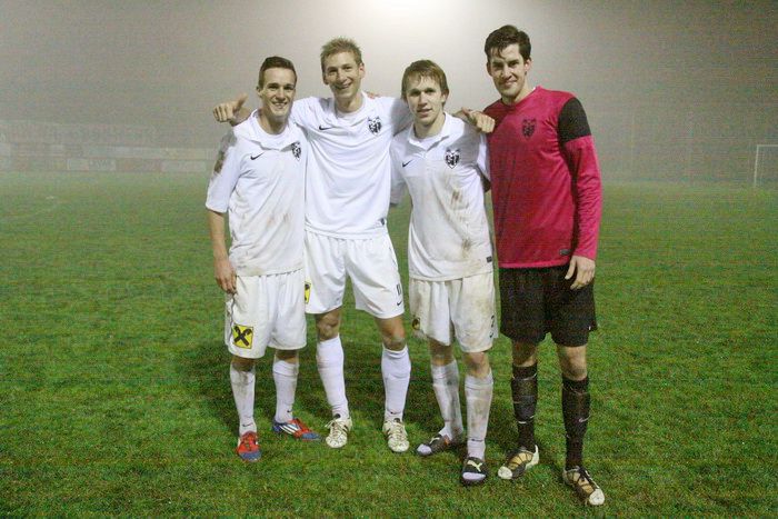 ...die Torschützen Raphael Kniewallner, Christoph Haas, Stefan Klenner und ein starker Torhüter Alex Roth stellen sich dem Fotografen Luis Niederl.