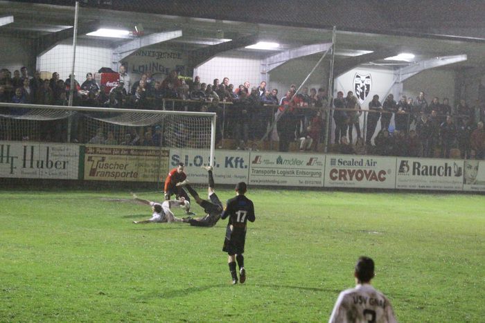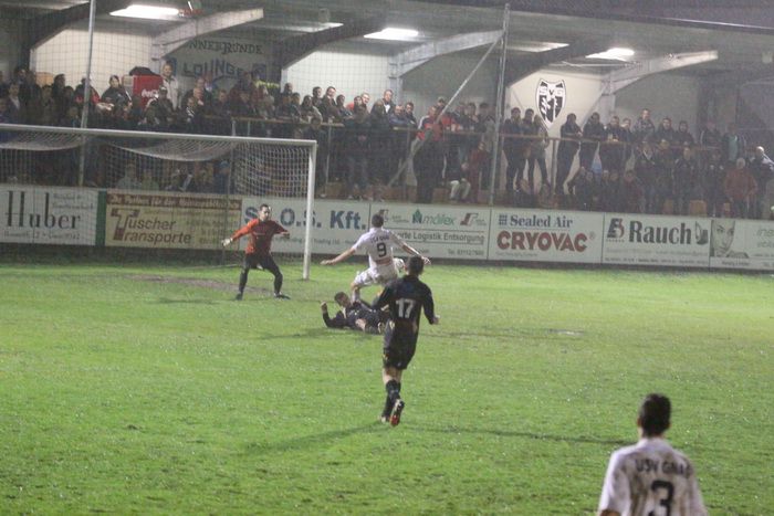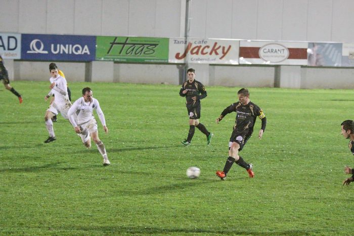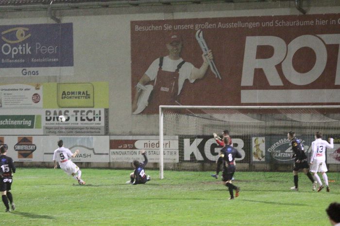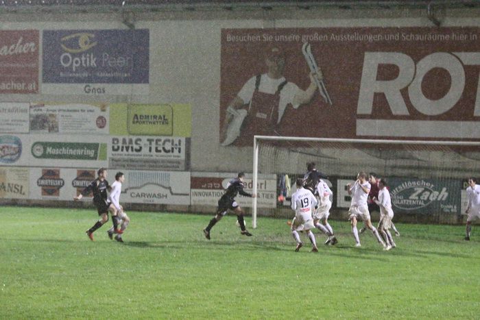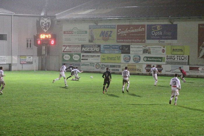 Auf der anderen Seite versuchte Alfred Geigl auf der rechten Seite, ebenfalls aus spitzem Winkel den Abschluss, der Ball kollerte aber am Tor entlang, Daniel Haas und Kölldorfer kamen nicht ans Leder.