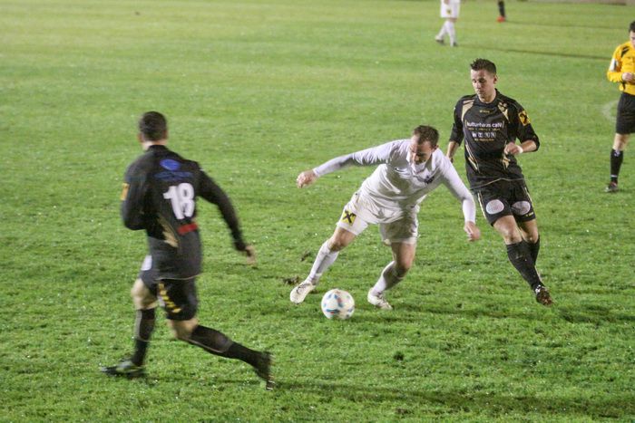 Noch in der selben Minute vergibt Kölldorfer (rechts) eine Zimmermann-Hereingabe von links, der Direktschuss misslingt.