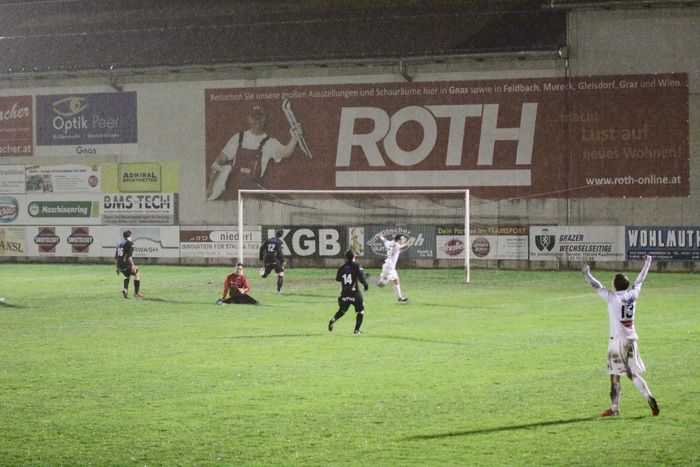 In der 26. Minute wurde Gnas-Stürmer Raphael Kniewallner von Christian Schadler mit einem Steilpass bedient, Kniewallner setzte sich im Sprint gegen die gegnerische Verteidigung durch und schob das Leder am herausgelaufenen Szommer vorbei ins Netz. 1:0 für Gnas.
