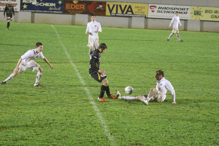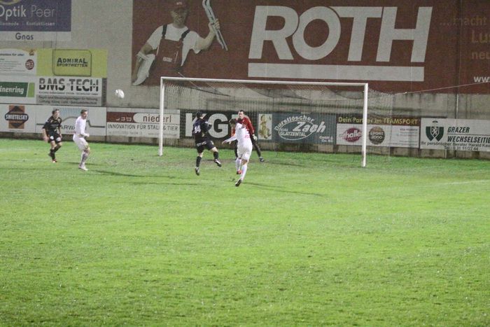 Nach einem Freistoß von Benjamin Puntigam setzte Daniel Haas das Leder knapp an der linken Torstange vorbei ins Torout (36.). Wenig später kamen die Gnaser über die linke Seite in den Strafraum. Kölldorfer wollte am langen Eck den Stanglpass von Zimmermann direkt übernehmen, traf den Ball aber ganz schlecht und so ging der Ball in eine andere Richtung als gewollt (36.).