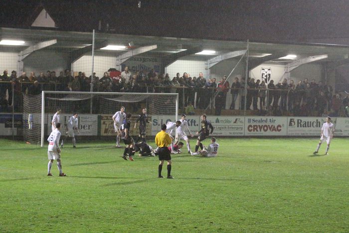 ...die Gnaser reklamieren Elfmeter, SR Lamb läßt weiterspielen (87.).