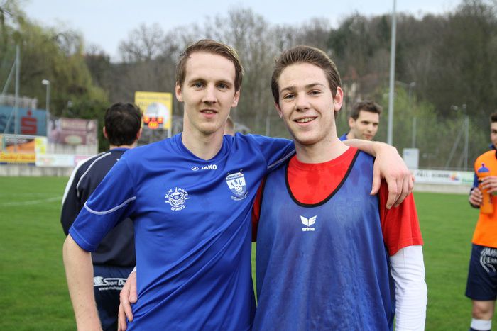 Rene Obendrauf bei einem Kopfballduell mit Kapitän Jokesch.