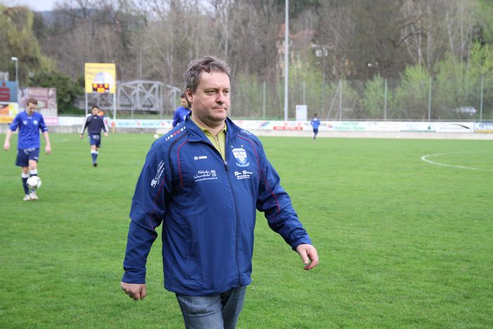 Pöllau-Trainer Johannes Sauhammel auf dem Weg zur Betreuerbank.
