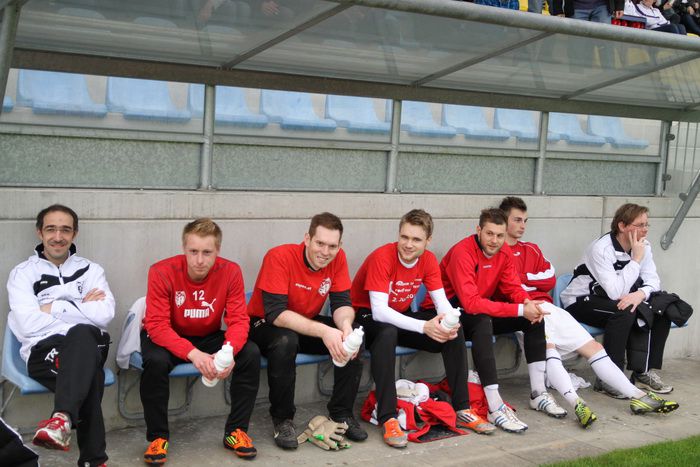Die Gnaser Betreuerbank mit Trainer Puntigam und Co-Fink mit den Spielern C.Fink, Taucher, T.Puntigam, Hödl und Lackner.