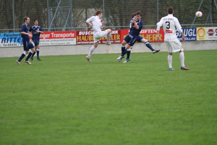 Matthias Schadler brachte einen Eckball zur Mitte, Rene Obendrauf, der an der 2. Stange stand, köpfelte den Ball Richtung langes Eck, dort stand Daniel Haas, der mit einem weiteren Kopfball die Führung für Gnas besorgte. 1:0 für Gnas ! Ein schöner Distanzschuss von Matthias Schadler ging links am Tor vorbei (62.). Gnas-Trainer Puntigam brachte nun Tobias Puntigam für Matthias Schadler (66.).